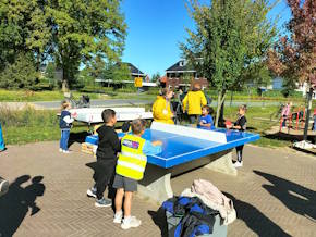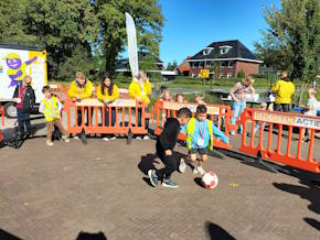 In september is het project Leren op Locatie gestart, een samenwerking tussen ROC Aventus, Iedereen Actief (Deventer zonder Drempels) en Fooruit. De opzet is dat 16 studenten vanuit  verschillende opleidingen binnen het ROC een jaar lang elke woensdagmiddag actief zijn binnen en begeleid worden door  de twee organisaties. Vanuit het ROC is er een docente bij betrokken. Afgelopen woensdag was dat met Iedereen Actief, vier verschillende carrousels op de school De Vijfer in de  Vijfhoek. Er werd geholpen met opbouw en ondersteuning bij de ongeveer 140 kinderen. De komende periode zullen ze betrokken zijn bij de Week van de toegankelijkheid, onderwijsprogramma's, digitale toegankelijkheid, zoals de app Ongehinderd en meerdere projecten. We zullen er in het komend jaar zeker nog verslag van doen. De foto's geven een beeld van de carrousel-activiteiten op het schoolplein  |